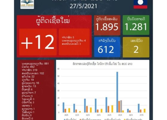 ຄະນະສະເພາະກິດປ້ອງກັນ, ຄວບຄຸມ ແລະ ແກ້ໄຂການແຜ່ລະບາດ ຂອງພະຍາດໂຄວິດ-19 ໄດ້ຖະແຫຼງຂ່າວໃນວັນທີ 29 ພຶດສະພາ 2021ໃຫ້ຮູ້ວ່າ: ລາວກວດພົບຜູ້ຕິດເຊື້ອພະຍາດໂຄວິດ-19 ເພີ່ມໃໝ່ໃນມື້ວັນທີ 29 ພຶດສະພາ 2021 ນີ້ຈໍານວນ 3 ຄົນໃນທົ່ວປະເທດ, ຜູ້ຕິດເຊື້ອໃໝ່ດັ່ງກ່າວຢູ່ນະຄອນຫຼວງວຽງຈັນ 1 ຄົນ,…