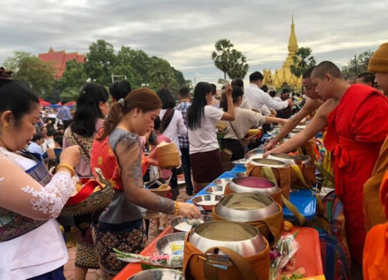 ຊາວພຸດຈໍານວນຫຼວງຫຼາຍໄດ້ພ້ອມໃຈກັນໄປຮ່ວມພິທີຕັກບາດເນື່ອງໃນງານບຸນນະມັດສະການພະທາດຫຼວງວຽງຈັນ ປະຈໍາປີ 2020 ໃນຕອນເຊົ້າຂອງມື້ວັນທີ 31 ຕຸລານີ້ ຊຶ່ງເປັນມື້ສຸດທ້າຍຂອງງານບຸນ, ໂດຍແຕ່ລະຄົນໄດ້ເອົາເຂົ້າໜົມ, ເຂົ້າຕົ້ມ ແລະ ສິ່ງຂອງອື່ນໆທີ່ກ່ຽວກັບການຕັກບາດມາຖະຫວາຍສັງຄະທານແດ່ພະສົງສາມະເນນຫຼາຍກວ່າ 100 ອົງ. ໃນຕອນບ່າຍຂອງມື້ນີ້ ເວລາປະມານ 13 ໂມງ 00 ຈະມີພິທີແຫ່ລູກຄີ ແລະ…