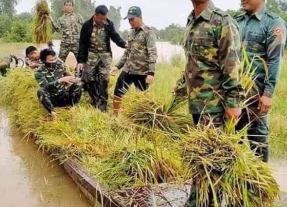 ຫ້ອງການປູກຝັງ ເມືອງຊົນນະບູລີ ແຂວງສະຫວັນນະເຂດ ແຈ້ງໃຫ້ຮູ້ວ່າ: ເນື້ອທີ່ນາເຂົ້າທີ່ກໍາລັງເກັບກ່ຽວຜົນຜະລິດ ຫຼາຍກວ່າ 4.000 ເຮັກຕາ ຖືກນໍ້າຖ້ວມຍ້ອນຝົນຕົກຕິດຕໍ່ກັນຫຼາຍວັນອັນໄດ້ເຮັດໃຫ້ລະດັບນໍ້າເຊບັງຫຽງ, ເຊຊັງຊອຍ, ເຊຈໍາພອນ ແລະ ຫ້ວຍນໍ້າລໍາຄອງໄຫຼລົ້ນຝັ່ງ ຂື້ນຖ້ວມເນື້ອທີ່ນາດັ່ງກ່າວ ແລະ ໄຫຼຖ້ວມຫຼາຍບ້ານໂດຍມີກໍາລັງອ້າຍນ້ອງທະຫານພາຍໃນເມືອງລົງຊ່ວຍເຫຼືອເກັບກ່ຽວເຂົ້າ, ເຄື່ອນຍ້າຍສິ່ງຂອງ ແລະ ສັດລ້ຽງຊ່ວຍປະຊາຊົນ. ຫົວໜ້າ…