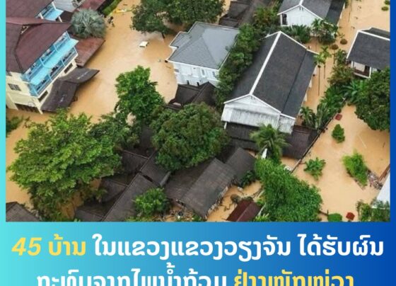 45 ບ້ານ ໃນແຂວງແຂວງວຽງຈັນ ໄດ້ຮັບຜົນກະທົບຈາກໄພນໍ້າຖ້ວມ ຢ່າງໜັກໜ່ວງ