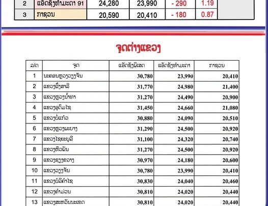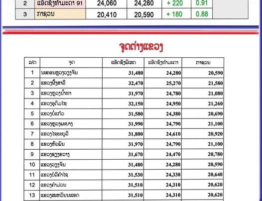 ກະຊວງອຸດສາຫະກໍາ ແລະ ການຄ້າ ໄດ້ປັບຂຶ້ນລາຄານ້ຳມັນເຊື້ອໄຟທຸກປະເພດເລີ່ມປະຕິບັດແລ້ວແຕ່ເວລາ 06:00 ໂມງຂອງມື້ນີ້