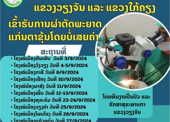 ຂ່າວດີ! ທີມງານປິ່ນປົວ ແລະ ຮັກສາສຸຂະພາບຕາ ແຂວງວຽງຈັນຈະຜ່າຕັດພະຍາດແກ່ນຕາຂຸ້ນໂດຍບໍ່ເສຍຄ່າ