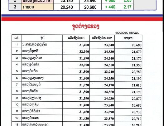 ກະຊວງ ອຸດສາຫະກຳ ແລະ ການຄ້າ ໄດ້ປັບຂຶ້ນລາຄານ້ຳມັນເຊື້ອໄຟທຸກປະເພດ ເລີ່ມປະຕິບັດ 06:00 ຂອງມື້ນີ້