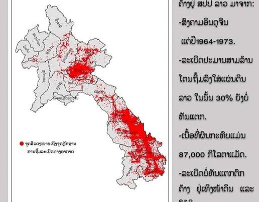 ລະເບີດທີ່ຖິ້ມລົງແຜ່ນດິນລາວໃນສະໄໝສົງຄາມ,ໃນນັ້ນປະມານ 30% ແມ່ນຍັງບໍ່ທັນແຕກ