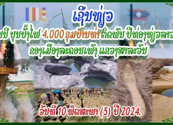 ງານປະເພນີບຸນບັ້ງໄຟ 4.000 ຂຸມບ້ານທ່າ ຕິດພັນປີທ່ອງທ່ຽວລາວ 2024 ຂອງເມືອງລະຄອນເພັງ ແຂວງສາລະວັນ ຈະໄດ້ຈັດຂຶ້ນໃນວັນທີ 10 ພຶດສະພາ 2024 ທີ່ຈະມາເຖິງນີ້.