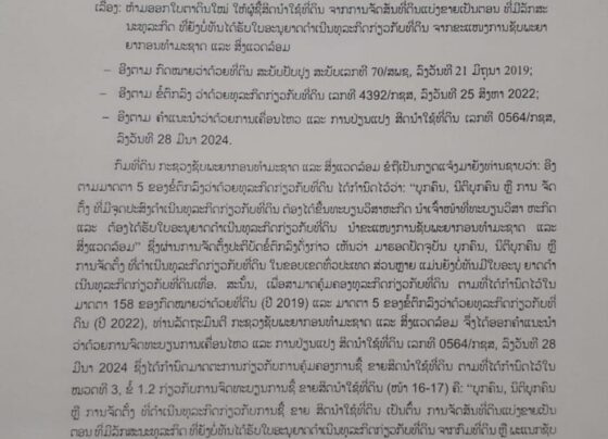 ກົມທີ່ດິນ ບໍ່ອະນຸຍາດອອກໃບຕາດິນໃໝ່ໃຫ້ຜູ້ຊື້ສິດນຳໃຊ້ທີ່ດິນຈາກການຈັດສັນທີ່ດິນແບ່ງຂາຍເປັນຕອນ (ລາຍລະອຽດຕ່າງໆຕາມແຈ້ງການ)