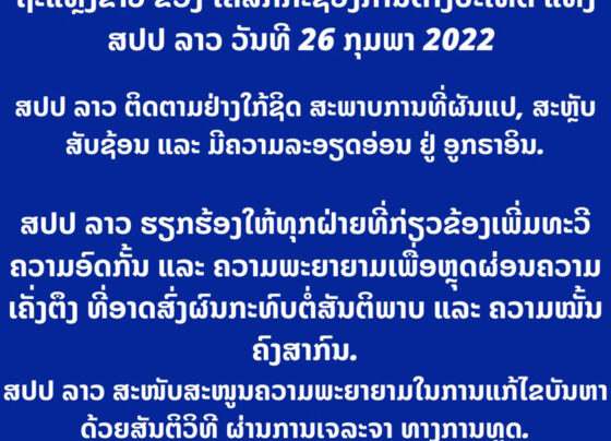 ຖະແຫຼງຂ່າວຂອງໂຄສົກກະຊວງການຕ່າງປະເທດ ແຫ່ງ ສປປ ລາວ ວັນທີ 26 ກຸມພາ 2022