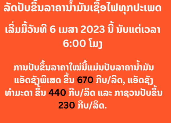 ລັດປັບຂຶ້ນລາຄານໍ້າມັນເຊື້ອໄຟທຸກປະເພດ