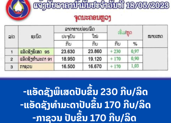 ລັດປັບຂຶ້ນລາຄານ້ຳມັນເຊື້ອໄຟທຸກປະເພດ