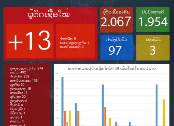 ມື້ນີ້ລາວກວດພົບຜູ້ຕິດເຊື້ອພະຍາດໂຄວິດ-19 ເພີ່ມໃໝ່ຈໍານວນ 13 ຄົນ