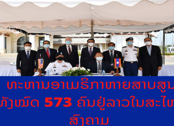 ອີງຕາມຂໍ້ມູນຈາກກະຊວງການຕ່າງປະເທດໃຫ້ຮູ້ວ່າ: ຮອດປັດຈຸບັນນີ້ ຄະນະວິຊາການຮ່ວມ ລາວ-ອາເມຣິກາ ສາມາດຄົ້ນພົບສົບ ຫຼື ສິ່ງເສດເຫຼືອຂອງທະຫານອາເມຣິກາທີ່ເສຍຊີວິດໃນສະໄໝສົງຄາມຢູ່ລາວ ທີ່ໄດ້ຢັ້ງຢືນ ແລະ ສົ່ງມອບໃຫ້ຝ່າຍອາເມຣິກາແລ້ວ ຈຳນວນ 288 ຄົນ ໃນຈໍານວນຜູ້ຫາຍສາບສູນທັງໝົດ 573 ຄົນພາຍຫຼັງທີ່ໄດ້ດໍາເນີນການສໍາຫຼວດ ແລະ ຂຸດຄົ້ນມາແລ້ວຫຼາຍກວ່າ 30 ປີ…