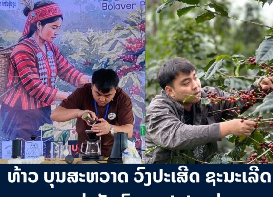 ການແຂ່ງຂັນຊົງກາເຟ ປາກຊ່ອງ (Paksong Drip Battle) ປະຈຳປີ 2025 ຈັດຂຶ້ນໃນບຸນກາເຟ-ຊາ ແລະ ຜົນຜະລິດກະສິກຳ ພູພຽງບໍລະເວນ ທີ່ອະນຸສາວະລີ ທ່ານສີທົນ ກົມມະດຳ ເມືອງປາກຊ່ອງ ແຂວງຈຳປາສັກ ເມື່ອບໍ່ດົນມານີ້ ຜົນການແຂ່ງຂັນ ອັນດັບທີໜຶ່ງແມ່ນທ້າວ ບຸນສະຫວາດ…