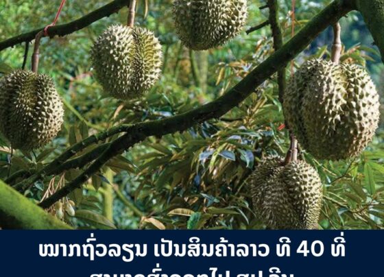 ປະເທດລາວ ໄດ້ເຊັນສັນຍາຮ່ວມກັນກັບ ສປ ຈີນ ເມື່ອມໍ່ໆມານີ້ເພື່ອເປີດຕະຫຼາດການສົ່ງອອກ ໝາກຖົ່ວລຽນ ຂອງ ສປປ ລາວ ນຳເຂົ້າໄປ ສປ ຈີນ ພາຍໃຕ້ເງື່ອນໄຂທາງດ້ານ ສຸຂານາໄມ ແລະ ສຸຂານາໄມພືດ ຖືເປັນລາຍການທີ 40 ທີ່ ສປປ…