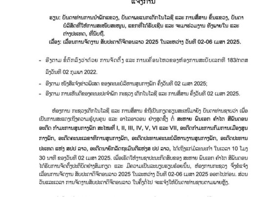 ແຈ້ງການ ເລື່ອນການຈັດງານສັບປະດາດີຈີຕອນລາວ 2025 ໃນລະຫວ່າງວັນທີ 2-6 ເມສາ 2025