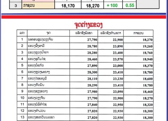 ກະຊວງອຸດສາຫະກຳ ແລະ ການຄ້າ ໄດ້ປັບຂຶ້ນລາຄານ້ຳມັນເຊື້ອໄຟທຸກປະເພດຕາມການຂຶ້ນລົງຂອງນໍ້າມັນໃນຕະຫຼາດໂລກ ເລີ່ມປະຕິບັດ ແລ້ວແຕ່ເວລາ 06:00 ໂມງຂອງມື້ນີ້