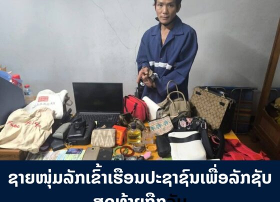 ຊາຍໜຸ່ມລັກເຂົ້າເຮືອນປະຊາຊົນເພື່ອລັກຊັບສຸດທ້າຍຖືກຈັບ