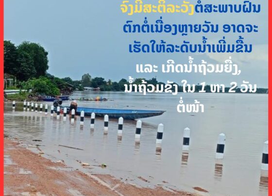 ລະດັບນ້ຳແມ່ນ້ຳຂອງ ແລະ ແມ່ນ້ຳສາຂາຕ່າງໆ ເຂດພາກກາງ ແລະ ພາກໃຕ້ ຂຶ້ນສູງກາຍເຂດເຕືອນໄພ