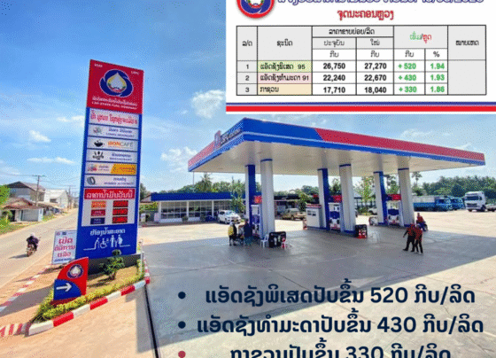 ກະຊວງ ອຸດສາຫະກຳ ແລະ ການຄ້າໄດ້ປັບຂຶ້ນລາຄານ້ຳມັນເຊື້ອໄຟທຸກປະເພດ ເລີ່ມປະຕິບັດແລ້ວແຕ່ເວລາ 06:00 ໂມງຂອງວັນມື້ນີ້
