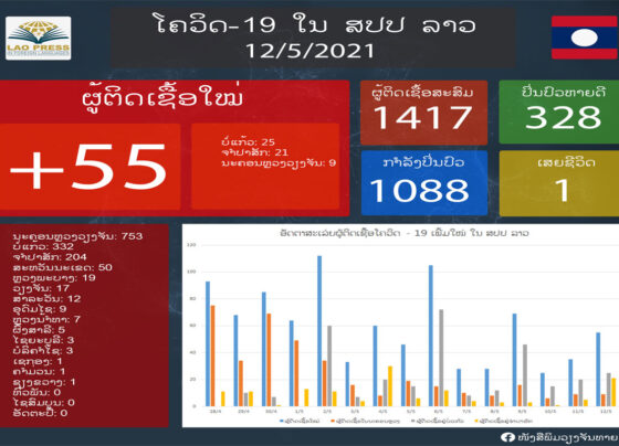 ຄະນະສະເພາະກິດປ້ອງກັນ, ຄວບຄຸມ ແລະ ແກ້ໄຂການແຜ່ລະບາດຂອງພະຍາດໂຄວິດ-19 ໄດ້ຖະແຫຼງຂ່າວໃນວັນທີ 13 ພຶດສະພາ 2021 ນີ້ໃຫ້ຮູ້ວ່າ: ລາວກວດພົບຜູ້ຕິດເຊື້ອພະຍາດໂຄວິດ-19 ເພີ່ມໃໝ່ 65 ຄົນ ໃນມື້ວັນທີ 13 ພຶດສະພາ 2021 ນີ້ (ເພີ່ມຂຶ້ນ 10 ຄົນຖ້າທຽບໃສ່ມື້ວັນທີ…
